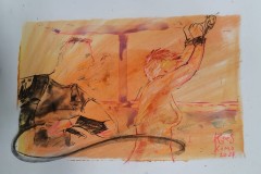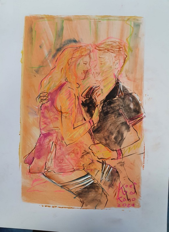 Zie de foto’s bij het verslag. Als je jezelf tegenkomt en je wilt de originele tekening kopen dan kun je contact opnemen met Koes. Zijn e-mailadres: info@koeskomo.com