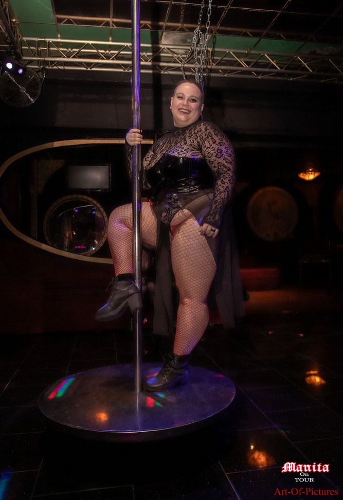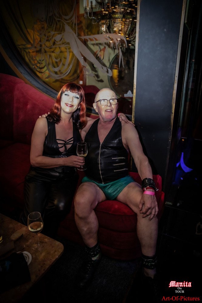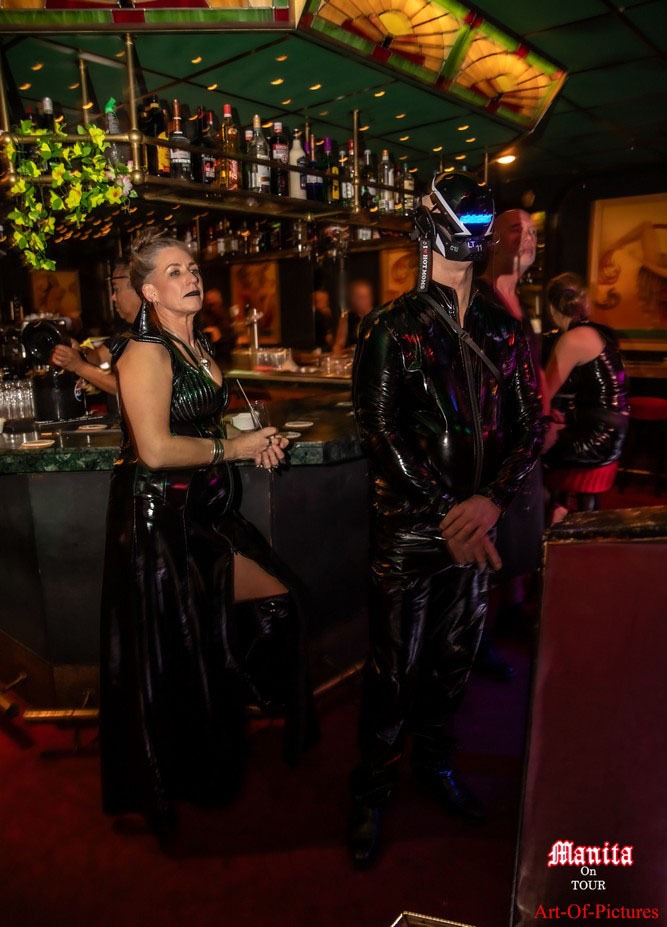 Later op de avond had ik een gezellig moment aan de bar met mijn lieve vriendin Meesteres M, die voor het eerst in lange tijd weer op de Showboat was. Dit keer zonder haar slaaf (die moest werken), maar dat hield haar niet tegen om ouderwets met mij aan de bar te hangen.