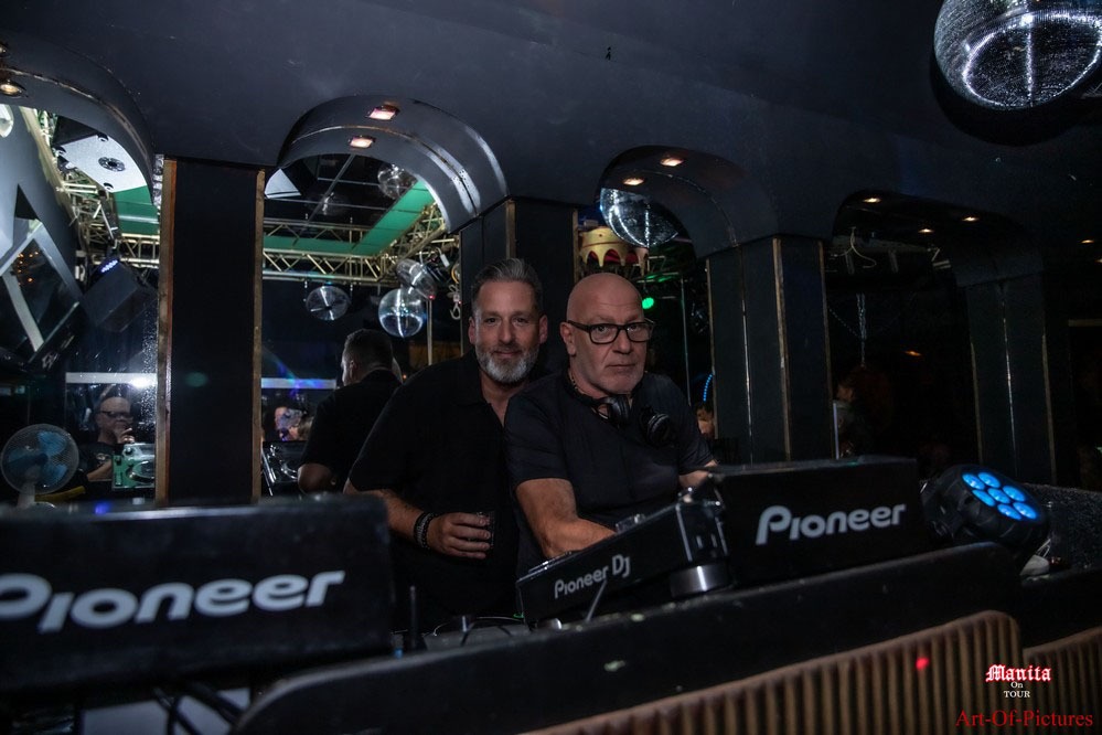 De deuren gingen om 20:30 uur open, en echt — binnen no-time stond de tent vol met enthousiaste mensen! Twee uur lang was het één groot feest van zoenen, knuffels en blijde gezichten. Veel mensen die ik al een tijd niet had gezien, én opvallend veel bezoekers van de beginjaren van mijn party’s op de Showboat. Ze kwamen er nu pas achter dat ik weer terug ben op de oude plek! We doen het weliswaar maar twee keer per jaar, maar het voelt echt weer als thuiskomen. Want dit is tenslotte de plek waar het in 2002 allemaal begon met de Manita Party’s.