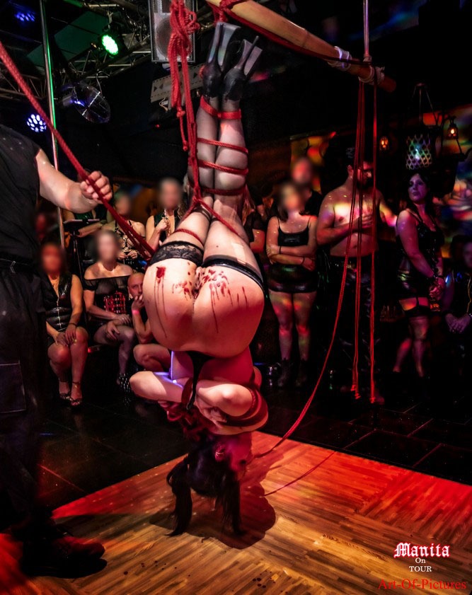 Om 23:00 uur was het tijd voor de show van mijn goede vriend Bob, die al jaren bondageworkshops en -shows doet onder de naam RopeMarks. Deze keer trad hij op met Keira.