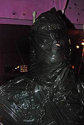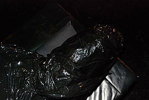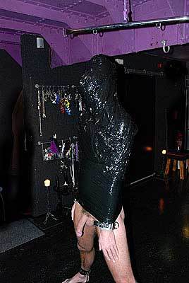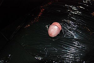 ‘Op je knieën zitten’. Ze wikkelt plastic om m’n hoofd. Even schrik ik. Gelukkig maakt ze een gaatje zodat ik kan ademhalen. Maar verder zie ik na een tijdje echt niks meer. Mijn tong schiet naar buiten – remmingsloos geil. Ver-schrik-ke-lijk opgewonden. De derde dat ik richting subspace vlieg. Dat wordt nog veel erger als ze mijn handen boven mijn hoofd vastzet aan een haak. De elektrische vliegenmepper is een hel.