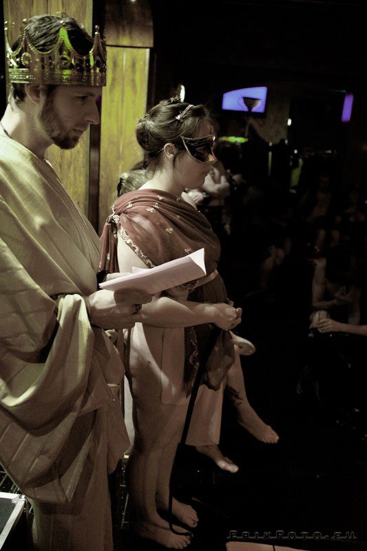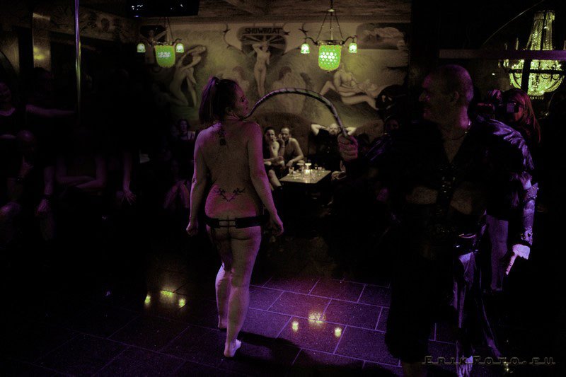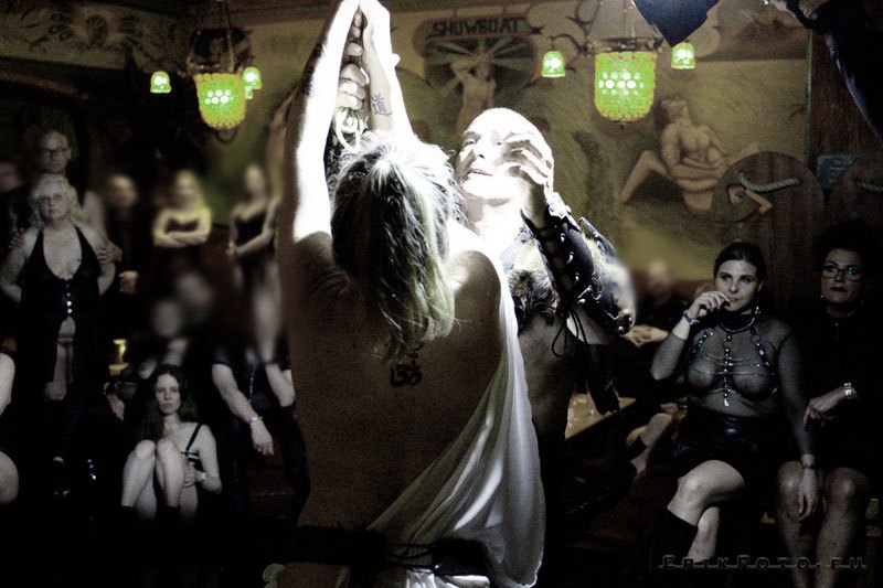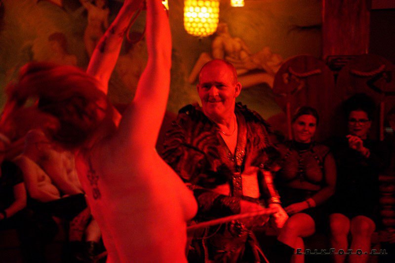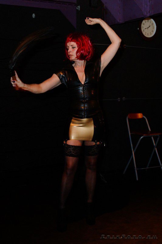 De show werd gegeven door Herakles & Najila45. Bijna elke maand is dit leuke stel op mijn party aanwezig. De show gaven zij samen met Edin-coset en in samenwerking met Daan van “DiubeoWhips.” Daan is een enthousiaste jonge man die prachtige zwepen maakt van parakoord. Tijdens deze show werden er alleen maar zwepen van Daan gebruikt. Hierdoor kregen wij een goede indruk wat deze zwepen doen!