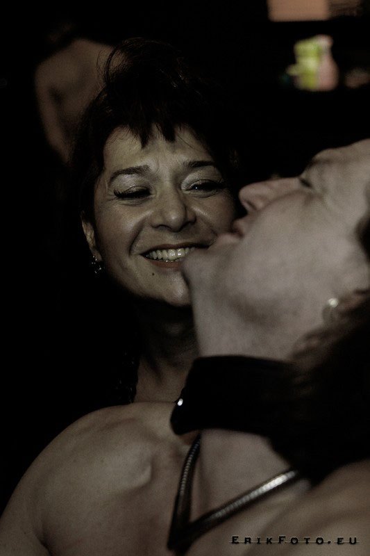 De avond begint wat kalmpjes, ik vermoed dat mensen afwachtend zijn op de show die komen gaat. Helaas door het spelen met een vriendin heb ik een deel gemist maar de laatste 5 min heb ik gelukkig nog kunnen genieten van een mooie show. Wat ging het hard en intensief, wat een chemie tussen die 2 lieverds. Het was met 1 woord wauw. We gaan naar beneden waar Herman1970 een vriendin van ons kennis laat maken met de flogger en cane, haar eerste ervaring dus al snel is het genoeg, hij stuurt me naar boven om tegen Vonkje te zeggen dat ik er klaar voor ben, stuiter stuiter te trap op als ik naar beneden wordt gestuurd met de speeltas van Vonkje.