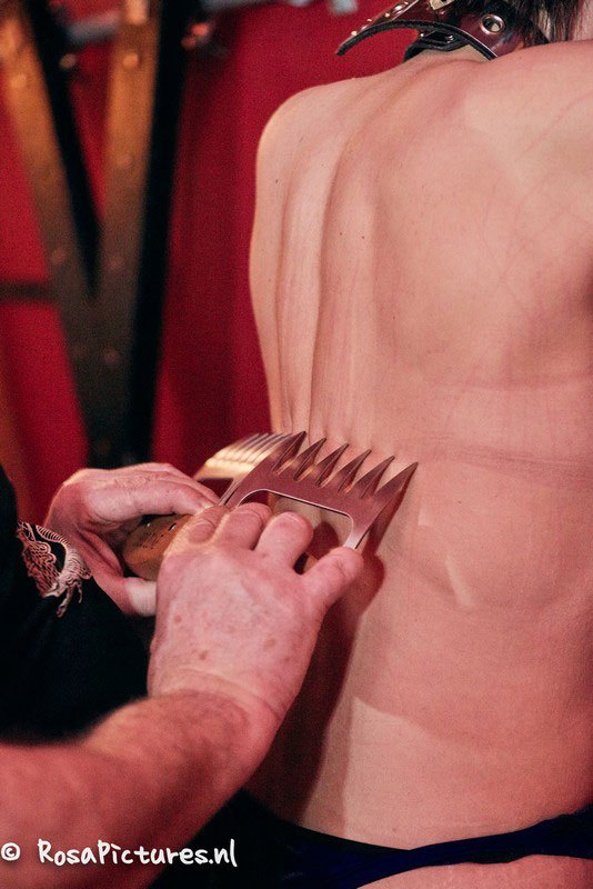 De show werd gegeven door Herakles & Najila45. Bijna elke maand is dit leuke stel op mijn party aanwezig. De show gaven zij samen met Edin-coset en in samenwerking met Daan van “DiubeoWhips.” Daan is een enthousiaste jonge man die prachtige zwepen maakt van parakoord. Tijdens deze show werden er alleen maar zwepen van Daan gebruikt. Hierdoor kregen wij een goede indruk wat deze zwepen doen!